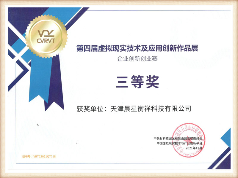 入驻陀螺研究院《2023年全球VR/AR产业图谱》;虚拟现实和增强现实技术应用协会-理事长单位;获得信息安全管理体系认证;纳税信用A级纳税人;天津市创新型中小企业
