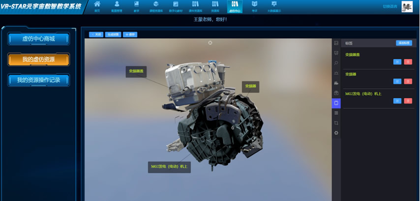 满足对象的工作过程、动态原理、运动仿真等的高交互虚仿展示教学需求,并具备学、考模式与统计分析
